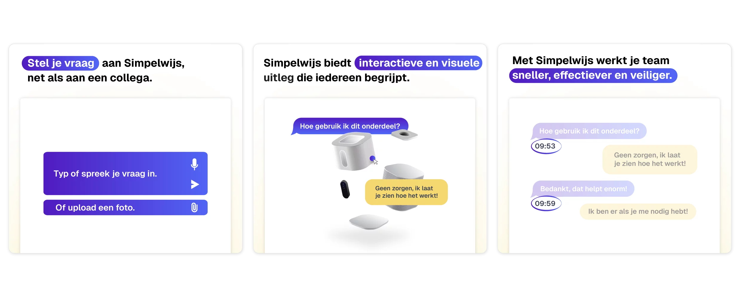 Met Simpelwijs krijgt je team direct de juiste uitleg: visueel, concreet en afgestemd op het apparaat.